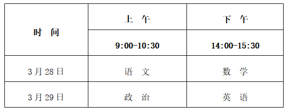 1.文化考试科目为语文、数学、政治、英语四科,每科150分,总分600分,使用国家通用语言文字作答。
